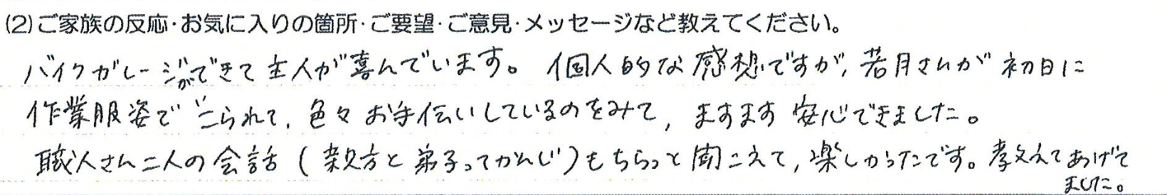 ガレージをたてた方もとても親切でした。
