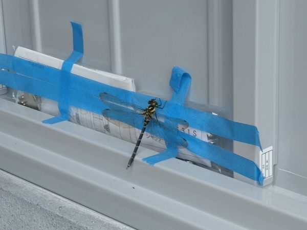 昨日ですがN様邸宅にて打合せをしていたのですが、設置した物置内をみたらオニヤンマが休んでいました。