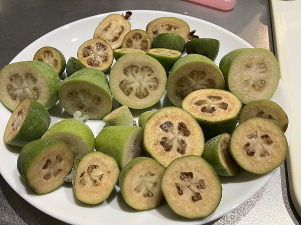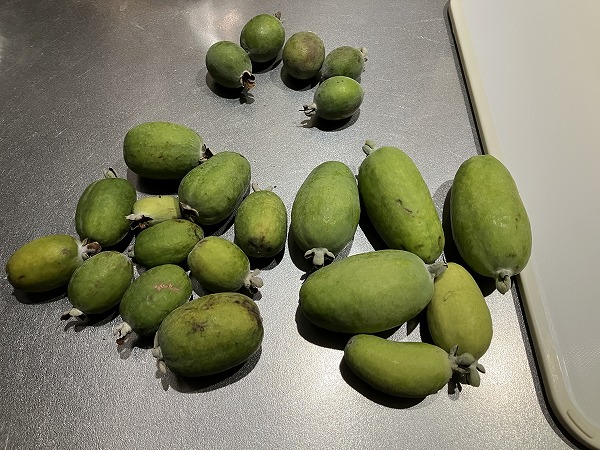 今年、我が家で育てているフェイジョアが数年ぶりにまともに結実しました。
