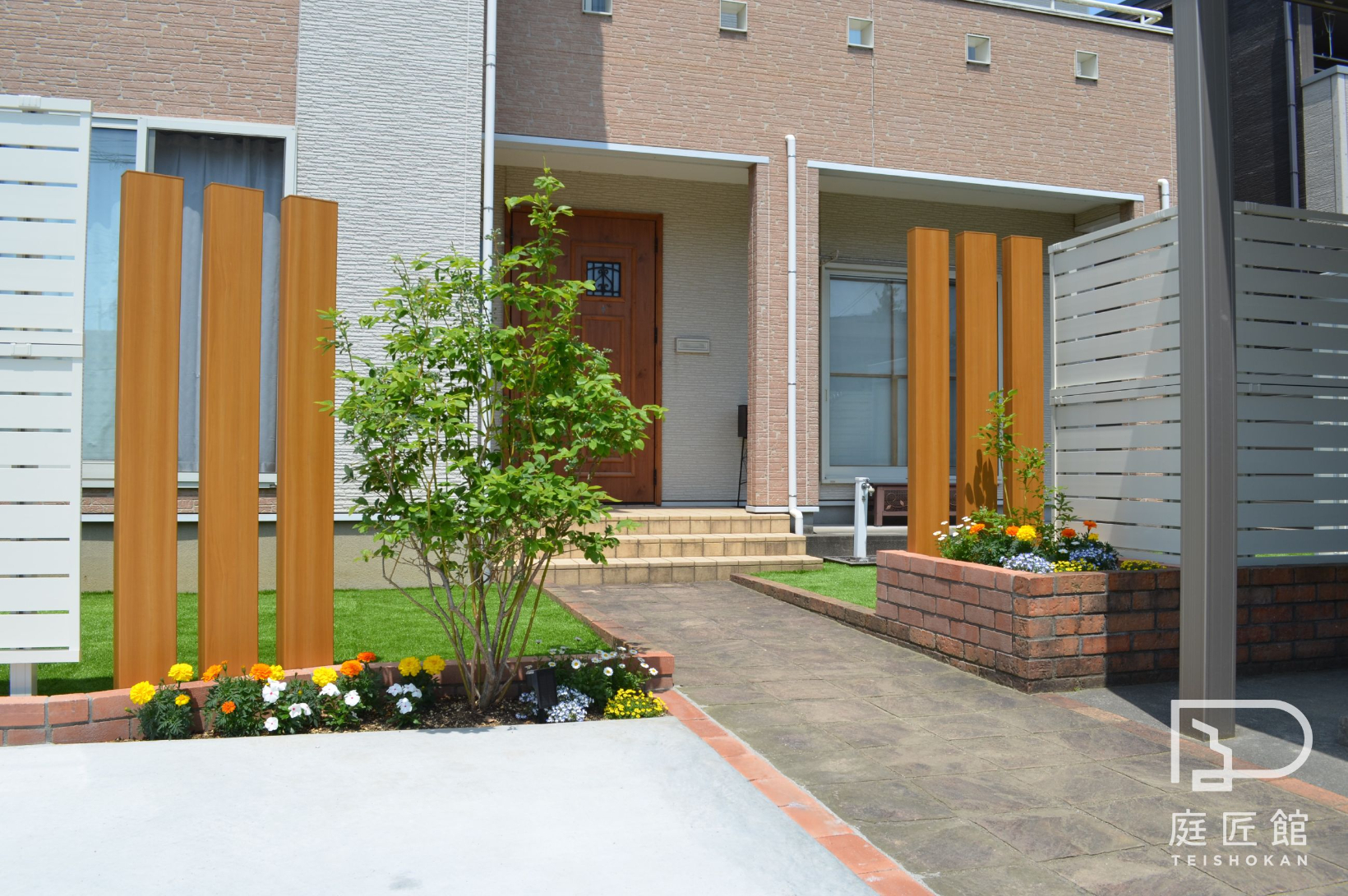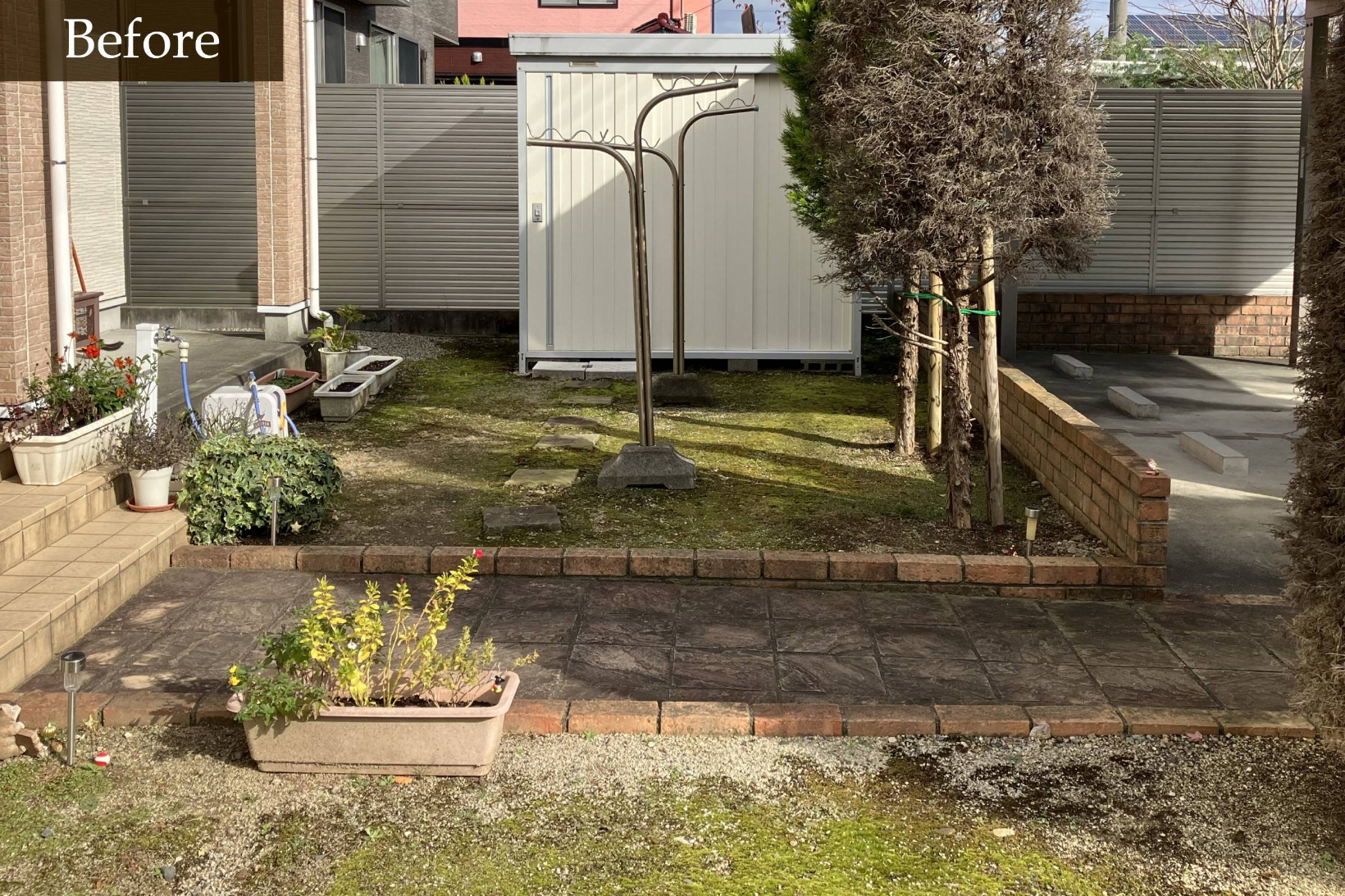 以前はコニファーとレンガ塀で囲われたお庭でした。