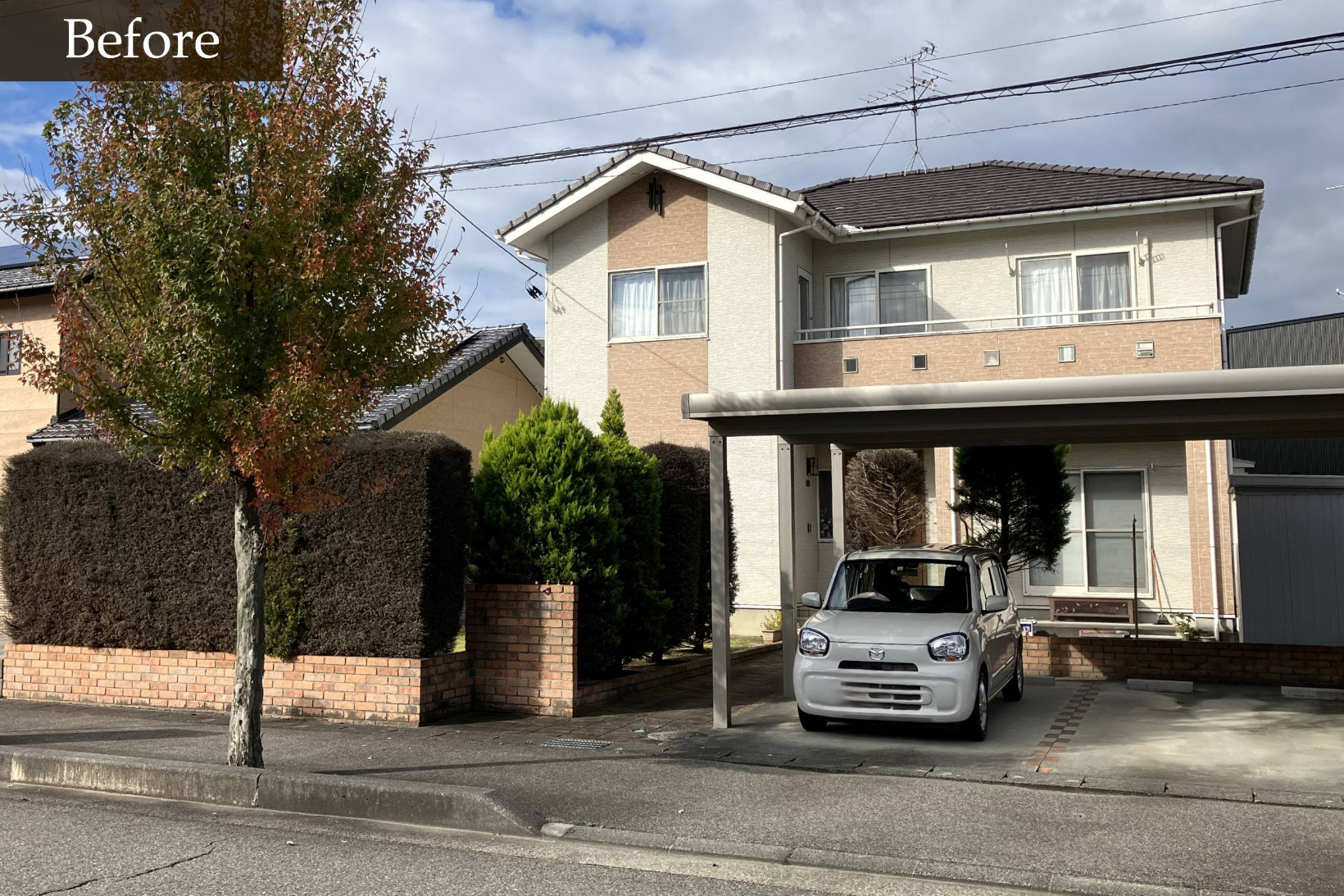 お庭の一部を駐車場へリフォームしました。明るい外観がより映えるように白色基調で外構を一新しています。