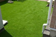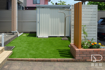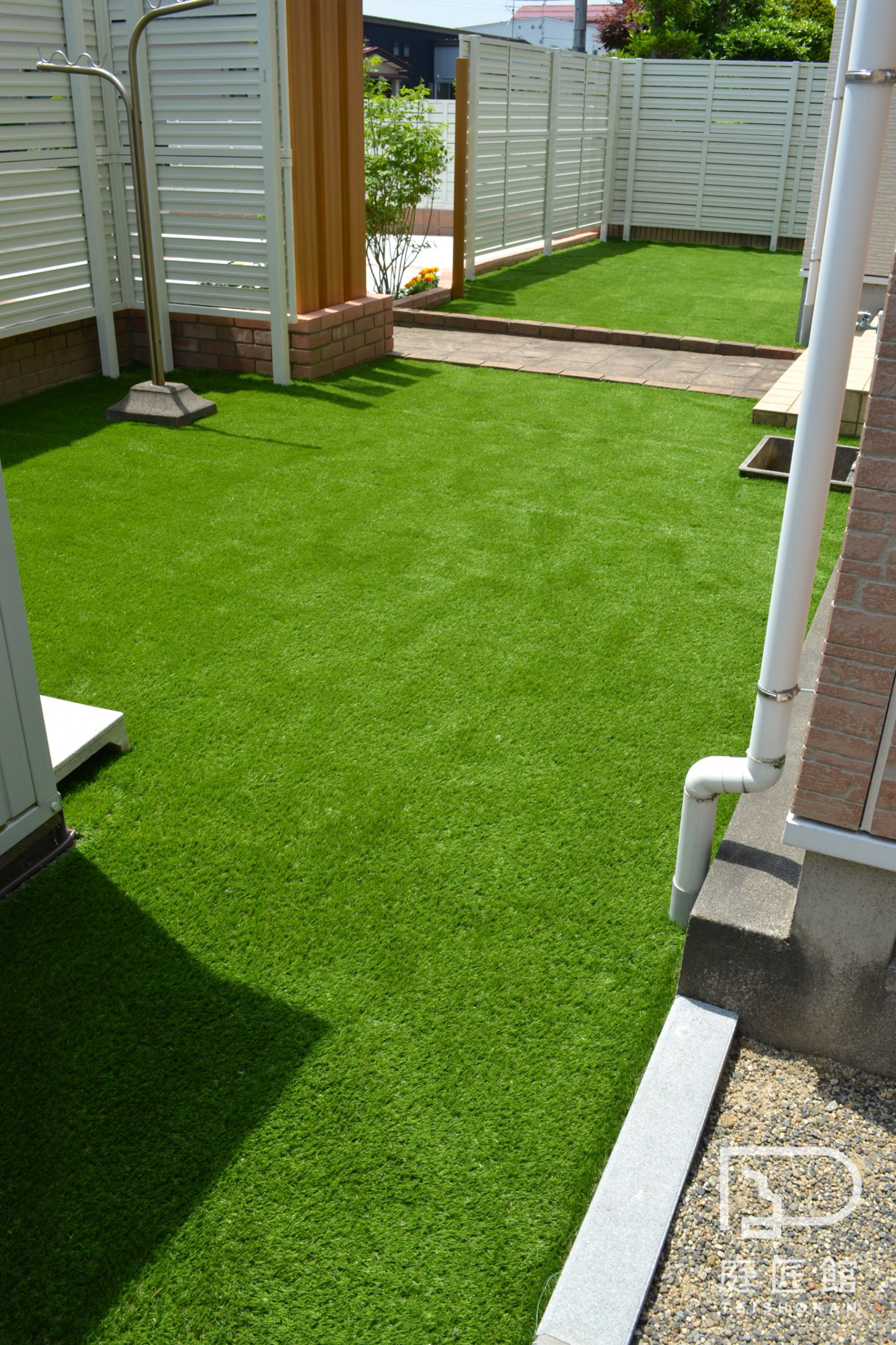 花壇以外はメンテナンスフリーの人工芝です。