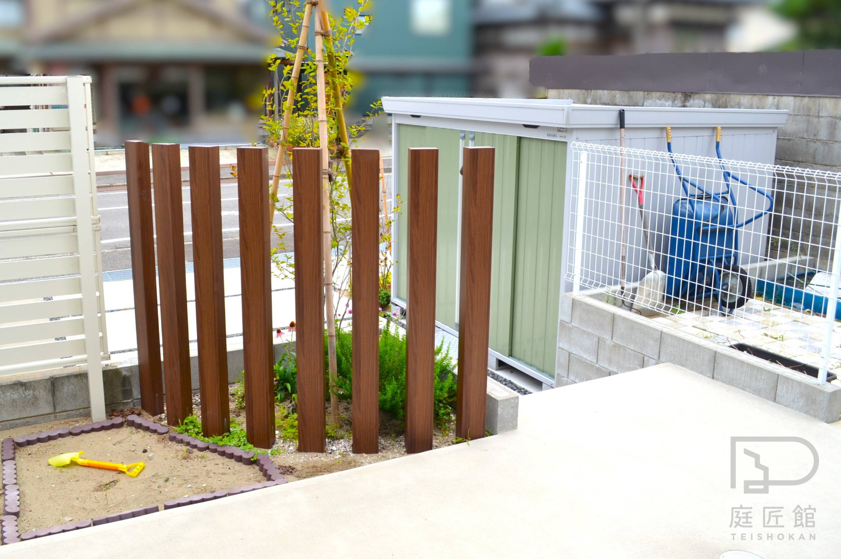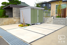 将来的には駐車スペースとしても使用可能なアプローチ。大容量の物置は駐輪やタイや収納として大活躍です。